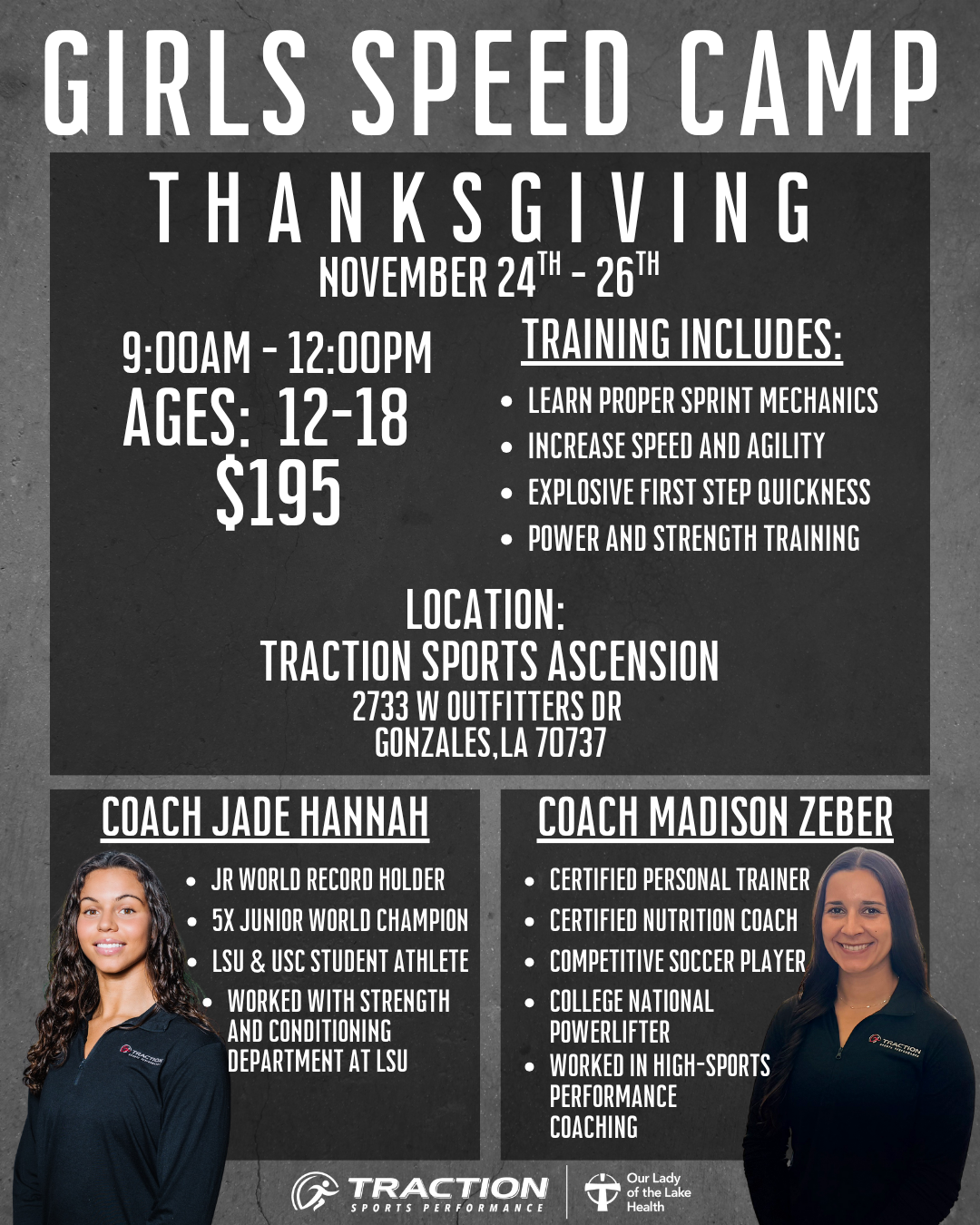 Located at our flagship facilities in Baton Rouge, Ascension and Hattiesburg, Traction Sports Performance is built to support athletes through every stage of recovery and performance.